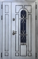 Стальная дверь арочного типа МДФ со вставками, стеклопакетом и решеткой